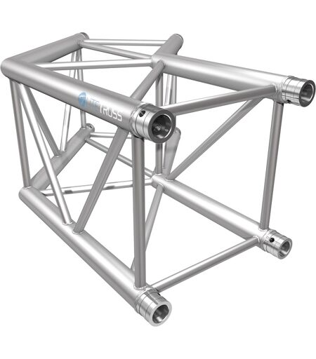 Litetruss H44V Traversensystem: H44V steht für 4-Punkt Heavy Duty-Truss. Konzipiert wurde die hochwertige Traverse als Allround-System im Bereich der Veranstaltungstechnik, beim Bühnenbau oder im anspruchsvollen Messebau. Kurzum überall dort, wo große Spannweiten mit hohen Belastungswerten realisiert werden müssen. Es handelt sich um eine robuste Baureihe, welche in verschiedenen Längen und Farben lieferbar ist. Kommen Sie auch gerne auf uns zu, wenn es um Sonderanfertigungen geht. Sonderbauteile fertigen wir kurzfristig und zuverlässig. Bei diesem multifunktionalen Traversensystem bestechen gerade beim Zusammenbau die besonderen Eigenschaften, wie das leichte Zusammenstecken und die variable Bauweise. Die hohe Sicherheit wird durch das separat erhältliche Litetruss-Verbinderset: gewährleistet. Für die Montage benötigen sie lediglich einen leichten Aluminiumhammer. Profitieren Sie von unserem Planungsservice und überzeugen Sie sich selbst von der Vielfältigkeit der Litetruss Produkte. Technische Daten: Kantenmaß: 390 mm Tragrohr: 48,3x3 mm Füllstäbe: 20x2 mm Legierung: EN AW 6082 T6 Gewicht: 8,2 kg Abmessungen: 60 x 39 x 39 cm (LxBxH) Verbinder müssen separat bestellt werden ...