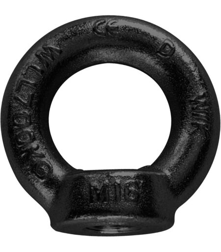 Ringmutterim Gesenk geschmiedetWerkstoff: C 15 E, Ausführung: schwarz, Gewinde: M12, Tragfähigkeit in Zugrichtung: 0,34 t, Abmessungen:d2= 30 mm, d3= 54 mm, d4= 30 mm, h= 53 mm, k= 12 mm ...