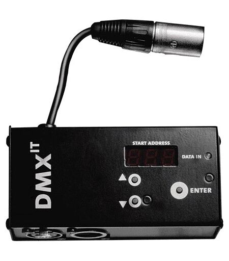 DMX IT 1 channel BOX: Externer DMX zu Analog Wandler mit 3 Pol. XLR Anschluss Das Smoke Factory DXM IT1 ist ein DMX-Wandler, mit dessen Hilfe sich Geräte ohne integriertes DMX aber mit einem Standard 0-10 V Analogeingang, per DMX ansteuern lassen. Beschreibung: Mithilfe des DMX IT1 können Sie Geräte ohne integriertes DMX, wie z. B. die Scotty II oder ältere Geräte per DMX ansteuern. Das DMX IT1 wird an den 0-10 V Eingang des Gerätes angeschlossen und benötigt auch keine separate Stromzufuhr. An den DMX Wandler können wie gewohnt die Ein- / Ausgangssignalkabel eingesteckt werden und per einfacher Tastenbedienung der DMX-Kanal von 001 bis 512 eingestellt werden. Kompatibel mit allen Geräten, die einen 0-10 V Eingang zur Ansteuerung besitzen. Gewicht Maße: 310 g 12,5 x 6,5 x 3,6 cm ...