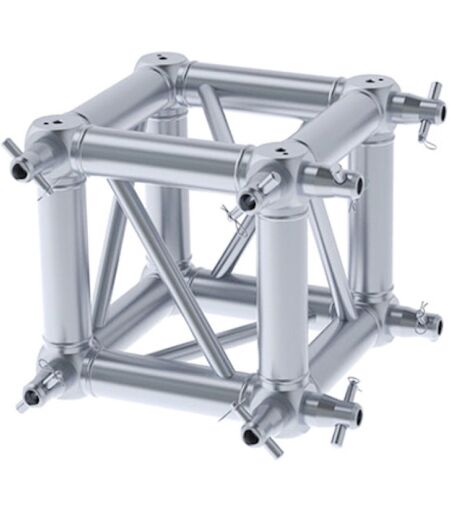 Boxcorner – LITECRAFT TRUSS LT34, inkl. 8 Halbkonis, Trusspins, R-Clips: Der LITECRAFT TRUSS LT34 Boxcorner ist die ideale Lösung für stabile und flexible Traversenkonstruktionen. Mit acht Halbkonen, Trusspins und R-Clips ausgestattet, ermöglicht er eine einfache und sichere Montage für professionelle Bühnen-, Messe- und Eventanwendungen. ...