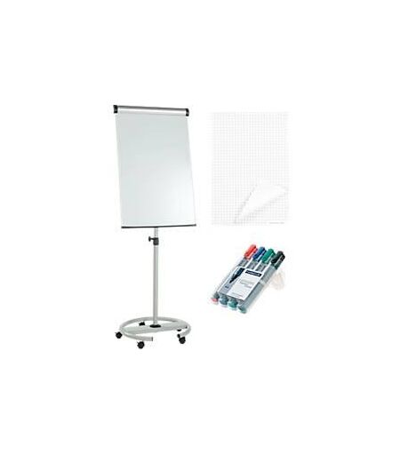 Mobiles Flipchart MAUL solid plus, Hochformat, höhenverstellbar, magnethaftend, 2 Papierhalter, B 660 x H 970 mm + 5 Blöcke à 20 Blatt & 4 Marker