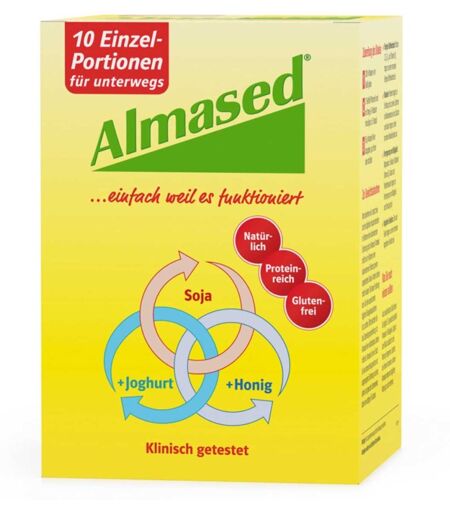 Anwendungsgebiet von Almased BeutelAlmased Vital-Pflanzen-Eiweisskost ist eine Mahlzeitersatz für eine gewichtskontrollierende Ernährung. Almased enthält aktive Honigenzyme.Das Almased 10er-Pack ist die ideale platzsparende Lösung, um Ihr Abnehmziel auch unterwegs im Blick zu behalten und ein nachhaltiges Gewichtsmanagement zu unterstützen. Ob im Berufsalltag als schnelle Mahlzeit, auf Kurzreisen oder Wochenendausflügen – mit den handlichen Portionsbeuteln haben Sie Ihren Nährstoff-Boost stets griffbereit.Die besondere Almased-Rezeptur aus proteinreichem Sojaeiweiß, hochwertigem Magermilch-Joghurt und enzymaktivem Honig versorgt Sie mit wichtigen Nährstoffen, die den Stoffwechsel anregen und gleichzeitig langanhaltend sättigen. Dank 52 g Protein pro 100 g und einer ausgewogenen Aminosäurezusammensetzung wird der Aufbau sowie Erhalt der Muskelmasse gefördert – für einen nachhaltigen Gewichtsverlust.Jeder Portionsbeutel liefert alle essenziellen Mikro- und Makronährstoffe und bietet mit diesem einzigartigen Nährstoffmix eine optimale Grundlage, um im Alltag konzentriert und leistungsfähig zu bleiben. Die handliche Größe passt in jede Tasche und jeden Koffer, damit Sie auch unterwegs nicht auf eine ausgewogene Ernährung verzichten müssen.(Bei Almased Beutel handelt es sich um ein Naturprodukt. Schwankungen in Geschmack und Farbe sind daher normal und keinesfalls ein Grund zur Beunruhigung.)Wirkungsweise von Almased BeutelDas Almased 10er-Pack überzeugt durch eine optimale Kombination aller essenziellen Aminosäuren, die eine hohe Proteinqualität gewährleisten. So wird der Körper effektiv beim Muskelaufbau unterstützt und ein aktiver, energiegeladener Alltag gefördert.Der besondere Almased-Effekt entsteht durch die Synergie der Inhaltsstoffe. Das schonende Herstellungsverfahren erhält die empfindlichen Honigenzyme, wodurch bioaktive Peptide gebildet werden, die gesundheitliche Vorteile bieten und die Bioverfügbarkeit der Proteine v ...