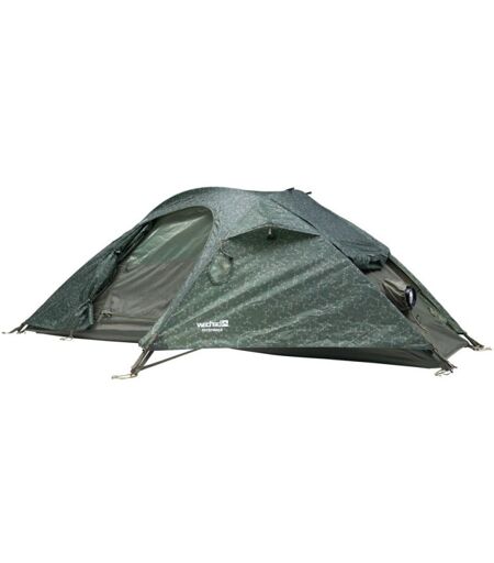 Das freistehende Wechsel Pathfinder Elements Zelt ist mit seinen mehrfach überkreuzten Gestängebögen extrem stabil bei jedem Wetter und kann in trockenen Nächten auch nur als Innenzelt aufgebaut werden. Neben dem seitlichen Eingang lässt sich auch die Front für eine ungetrübte Sicht und bessere Durchlüftung öffnen. An der Frontseite ist ein besonderes Features angebracht, die vor allem die Fotografen unter euch freuen wird. Über eine runde Öffnung mit Kordelzug kannst du das Objektiv deiner Kamera nach außen bringen und aus dem Zelt heraus geschützt vor Regen oder Mücken die Landschaft und die Tierwelt fotografieren. Damit die Tiere nicht sofort die Flucht ergreifen, ist das Außenzelt beim Wechsel Pathfinder Elements in Tarnfarben gehalten. So sticht das Zelt in der natürlichen Umgebung nicht so stark heraus und ermöglicht es dir, ein unauffälliges Nachtlager zu errichten. Die Breite und Länge der Liegefläche sind beim Wechsel Pathfinder Elements mit 230 x 97 cm (und 70 cm Breite am Fußende) noch eher großzügig gehalten, die Höhe von 75 cm ist allerdings nicht mehr für aufrechtes Sitzen geeignet. Eine kleine Apsis am Eingang bietet dir noch einen 44 cm tiefen Stauraum für deine Wanderschuhe oder andere Ausrüstung. Und schließlich ist das Wechsel Pathfinder Elements Zelt gerade für Touren durch schwieriges Terrain perfekt geeignet, da du es mit seiner freistehenden Konstruktion nicht so weitläufig abspannen musst, damit es stehen bleibt. Alles in allem ist das Wechsel Pathfinder Elements Zelt perfekt für Trekkingtouren, Bushcraft Ausflüge oder Tierbeobachtungen geeignet und punktet dabei mit seiner unauffälligen Optik, den praktischen Features und dem einfachen, aber extrem stabilen Aufbau. ...
