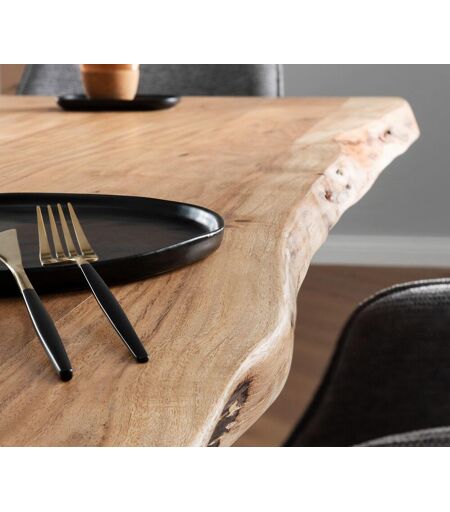 deVries Esstisch »Catania«, U-Form-Gestell, ca. 160 x 90 cm Farbe: Tischplatte Akazie, geölt Gestell schwarz Material: Tischplatte zertifiziertes Plantagen-Akazien-Vollholz Gestell Metall, pulverbeschichtet Maße: B x H x T ca. 160 x 77 x 90 cm Unterschubhöhe ca. 74 cm Inhalt: Inkl. Aufbauanleitung und Montagematerial Gewicht: Ca. 63 kg Tragkraft: Max. 50 kg Gebrauchsanweisung: Entfernen Sie Feuchtigkeit durch z.B. Flüssigkeiten aus umgestoßenen Gläsern schnellstmöglich mit einem weichen Tuch und lauwarmem Wasser sowie milder Seifenlauge. Stellen Sie keine heißen Gegenstände, wie z.B. Teelichter, sowie fettige oder ölige Gegenstände auf die Tischplatte. Dieses könnte permanente Flecken verursachen. Bitte vermeiden Sie den Kontakt mit scharfen und spitzen Gegenständen, um eine Verletzung der Oberflächen zu vermeiden. Tipps /Hinweise: Der Aufbau des Möbelstückes sollte mit 2 Personen durchgeführt werden. Bitte achten Sie während des Aufbaus auf Scher- und Quetschstellen. Montieren Sie das Produkt auf einem ebenen Untergrund. Bitte überladen Sie den Artikel nicht. Bitte springen oder stehen Sie zu Ihrer eigenen Sicherheit nicht auf dem Produkt. Bitte überprüfen Sie regelmäßig im Zeitablauf die Schrauben auf Festigkeit. Warnhinweise: Warnung! Fehlgebrauch: Ihr Möbelstück darf nicht als Aufstiegshilfe verwendet werden. Steigen, legen oder setzen Sie sich niemals auf Schubkästen, Einlegeböden oder auf nicht dafür vorgesehene Möbelteile. Achten Sie besonders auf Kinder. Achtung! Kippgefahr: Stellen oder setzen Sie sich niemals auf die ausgefahrene/ausgeklappte Lehne, Beinteil oder Armlehne des Möbels. Es könnte dadurch beschädigt werden und/oder kippen. Ziehen oder schieben Sie das Möbelstück nicht. Durch Schieben, Umbauen und Rangieren können die Füße leicht verbiegen oder abbrechen, auch der Bodenbelag kann Schaden nehmen. Heben Sie es zum Versetzen an. Sonstige Hinweise: Artikel wird zerlegt geliefert Lieferung in 2 Packstücken auf Palette per Spedition Anlieferung bis an die Bordsteinkante Keine Inselbelieferung Versandgewicht ca. 73 kg Hersteller-Artikel-Nummer: BL60220 Hersteller: Mr. Deko, Lübecker Str. 7c, 22941 Delingsdorf verkauf@mr-deko.com Pulverbeschichtetes Metall-GestellZertifiziertes Plantagen-Akazien-VollholzDas geölte Finish hebt die individuellen Holzmerkmale hervorJede Tischplatte ist ein Unikat mit einzigartiger Maserung und FormHöhenverstellbare Füße passen sich jedem Untergrund an ...