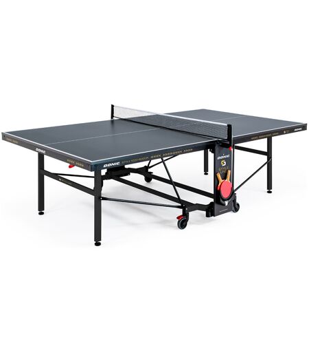 Donic Tischtennisplatte Style 1000 Indoor Design trifft Funktionalität: DIE Donic Style Line steht für höchste Qualitäts- und Funktionsansprüche kombiniert mit einem herausragenden Design. Die farblichen Akzente im Bereich des Rahmens und die gewählten Logo Prints wurden perfekt auf die graue Oberfläche abgestimmt und bilden so ein harmonisches Gesamtkonzept. Die Outdoor-STYLE Line 1000 wurde mit einem eigens entwickelten Farbdesign versehen. Die Kombination aus schwarzem Rahmen, grauer Oberfläche und orangenen Highlights, geben dem Style-1000 Modell einen unverwechselbaren Charakter. Ein Profi-Spielerlebnis mit den besten Spieleigenschaften: Der Donic Style 1000 Indoor ist die Premium-Tischtennisplatte, die keine Wünsche übrig lässt. Gefertigt unter höchstem Produktionsstandards in Deutschland, wurde der Style 1000 Indoor mit einer 22 mm starken Tischoberfläche ausgestattet. Ein Maß; dass sonst nur bei Profiwettkämpfen eingesetzt wird und zur Verbesserung der Stabilität und vor allem zur Optimierung der Spieleigenschaften beiträgt. Mit dem neuen Donic Trajectory Rebound System (Trs) kommt zudem ein einzigartiges Verfahren zur Vor- und Nachbehandlung der Tischoberflächenfurniere zur Anwendung. Dies sorgt in Kombination mit dem Auftrag einer Spezialschicht für einen gleichmäßigen Ballabsprung und verhindert zudem ein Verrutschen des Balles. Das neue Verfahren schützt außerdem die Holzfurniere vor äußeren Einflüssen und verlängert so die Lebensdauer der Tischoberfläche. Maximale Kompaktheit: Das 50 mm dicke Metall-Rahmenprofil und das 50x30 mm starke Vierkantrohrprofil geben der Tischtennisplatte die nötige Robustheit und Stabilität. Die hochwertige Kippsicherung mit automatischem Einrastmechanismus (Double Lock System) auf beiden Seiten des Tisches verhindert beim Auf- und Abbau das Umkippen und begünstigt zudem ein schnelles Hoch- und Runterklappen der Tischhälften. Die TT-Platte ist damit auch perfekt für öffentliche Einrichtungen und Schulen geeignet. Smarte Features: Der platzsparende und kompakte Donic Style 1000 Indoor verfügt über eine Premium-Sonderausstattung. Inkludiert ist eine hochwertige Kunststoff-Netzgarnitur mit stabilen Netzpfosten. Anhand der Höhenverstellschraube kann die Höhe des Netzes individuell eingestellt werden. Mit der am Netz befindlichen Spannschnur ist die Spannung des Netzes konfigurierbar. Die beiden seitlich angebrachten Schläger- und Ballhalterungen in Style Line Optik, bieten ausreichend Platz zum Verstauen von 4 Tischtennisschlägern und 10 Tischtennisbällen. Das einseitige Hochklappen der Tischoberfläche in den Single Player Modus ist ebenfalls möglich. Aufgrund der vier gummierten Leichtlaufrollen sind Positionswechsel kein Problem. Zwei von vier Rollern wurden mit einer Feststellbremse versehen. Somit kann ein unbeabsichtigtes „Wegrollen“ während oder nach dem Spielen verhindert werden. Abgerundet wird die Ausstattung mit den an den Tischbeinen befindlichen Höhenverstellern; die Höhenunterschiede bis zu 30 mm... ...