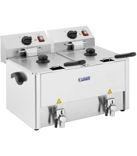 Elektro-Doppel-Fritteuse - 2 x 13 l - 6500 W - EGO-Thermostat - Ablasshahn - Royal Catering RCEF 13D-EGO