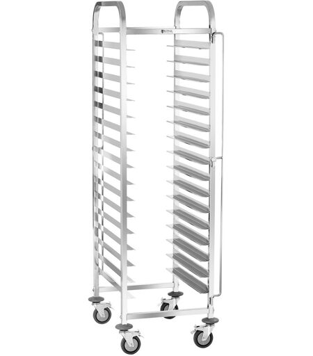 Tablettwagen - Edelstahl - 16 Einschübe - für Tabletts: 40 x 60 cm - Längseinschub - 128 kg - 2 Sicherheitsbügel - Royal Catering RCTW-16TB.1
