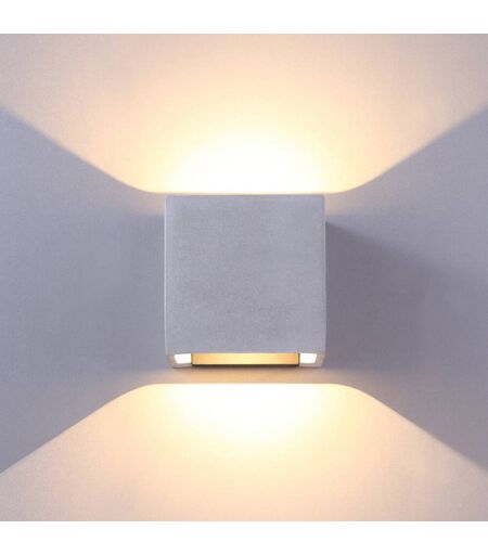 Riak ist eine würfelförmige LED-Außenwandlampe mit Lichtaustritt nach oben und unten und einem attraktiven Gehäuse aus grauem Beton. ...