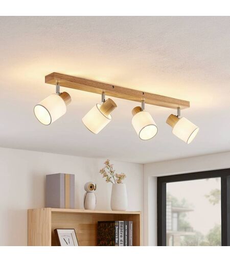 Der Deckenstrahler Wanessa ist mit der Komination von Holz und weißen Lampenschirmen ausgestattet, die beweglich sind und somit das Licht individuell ausrichtbar machen. Perfekt für moderne Wohnräume und vielseitig einsetzbar. ...