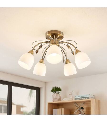 Deckenlampe Thaddeus Lindby, dimmbar, bronze / altmessing, für Wohn- / Esszimmer, Metall, Deckenlampe