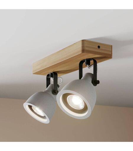 Lindby Spot Mitis, 30 cm, 2-flg., grau, Holz, Beton, GU10 Mitis Lindby, dimmbar, Holz dunkel, für Wohn- / Esszimmer, Holz, Industrielles Design, Strahler