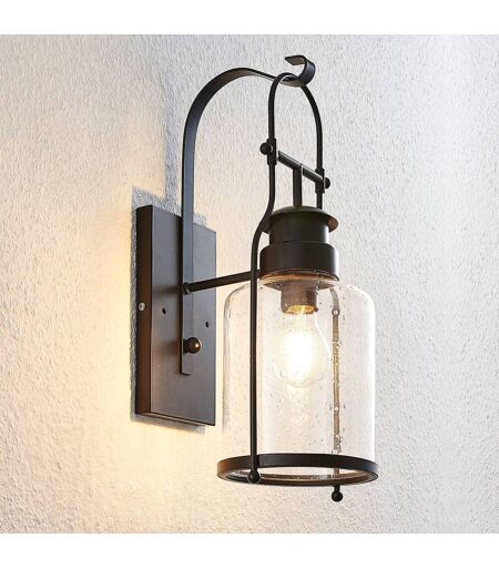 Die Wandleuchte Rozalie sieht aus wie eine nostalgische Laterne und hat eine schwarze Oberfläche sowie einen Glaseinsatz mit Blasenstruktur, so dass der gesamte Look schön und abgestimmt wirkt. ...