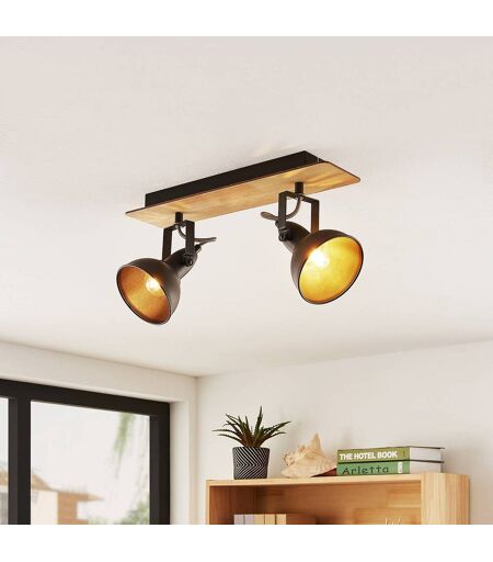 Die Deckenleuchte Aylis hat eine Halterung aus dekorativem Holz und bewegliche Metallschirme in Schwarz, so dass ein ansprechender Look entsteht, der auch in skandinavisch oder industriell anmutende Einrichtungen gut passt. ...