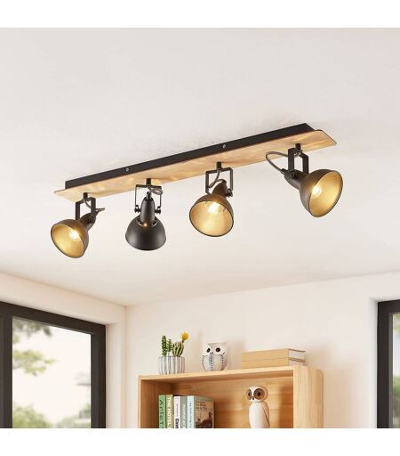 Die Deckenleuchte Aylis hat eine Halterung aus dekorativem Holz und bewegliche Metallschirme in Schwarz, so dass ein ansprechender Look entsteht, der auch in skandinavisch oder industriell anmutende Einrichtungen gut passt. ...