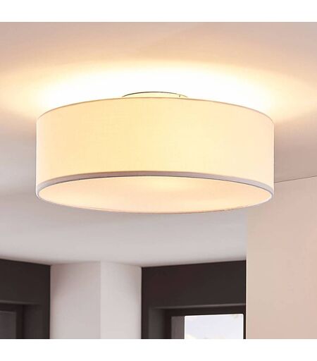 Deckenlampe Sebatin Lindby, dimmbar, weiß / opal, für Schlafzimmer, Textil / Stoff / Seide, Modern, Deckenlampe
