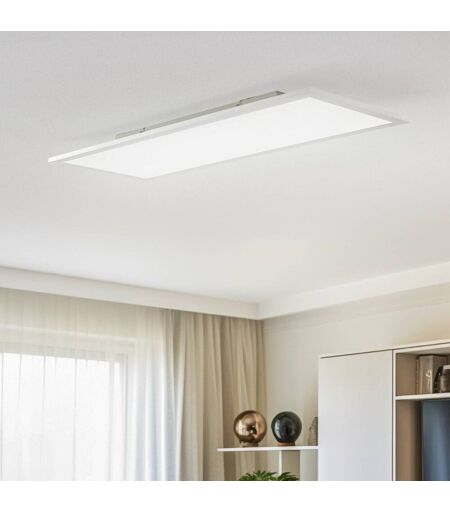 Die Deckenlampe Livel hat eine eckige Grundform, ein schlichtes Äußeres und bietet hellen Lichtschein für viele Gelegenheiten. Ein Fernbedienung zum Dimmen der Leuchte und zum Verändern der Lichtfarbe liegt bei. ...
