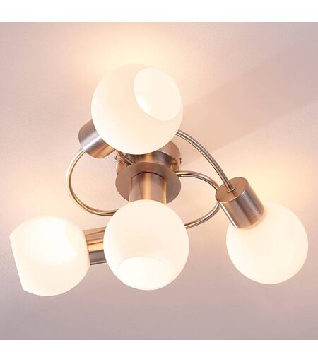 Die Schirme der Deckenleuchte Ciala sind weiß und kugelförmig, so dass recht angenehmer Lichtschein entsteht, der zu einem wohnlichen Ambiente passt. ...