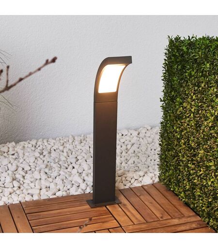 Die Wegeleuchte Juvia ist mit LEDs bestückt und hat einen grafitgrauen Leuchtenkörper. Das moderne Aussehen passt hervorragend zu zeitgemäßer Architektur. ...