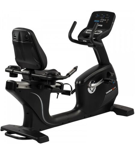 Sehr schickes und stabiles Liegeergometer der neuen Taurus 9.9 Fitnessgeräte-Familie Perfekter Rundlauf: Sorgfältig gearbeitete, große Schwungmasse angetrieben von einem hochwertigen Riemensystem und gebremst von einem fortschrittlichen Induktionsbremssystem Tolles Bedienkonzept: Sehr leichtes... ...