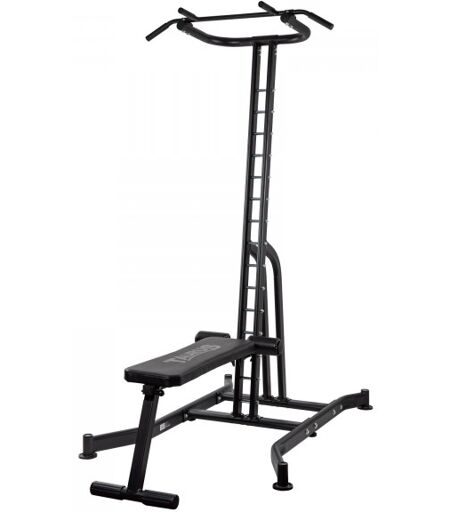 Power Tower mit Dip-/Beinhebestation, Klimmzugstation, Hantelbankmodul sowie Polsterrollen für Bauchtraining Effektives Körpergewichtstraining auf kleinstem Raum Dipstation und Bank sind in verschiedenen Höhen anbringbar Dipstation und Hantelbank sind auch abnehmbar Kombinierbar mit vielen... ...