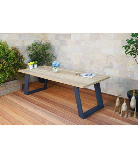 OUTFLEXX Esstisch, dark grey/natur, Alu/recyceltes Teak, 240x100x76cm, rustikal gebürstet, FSC®-zertifiziertes Produkt PRT473