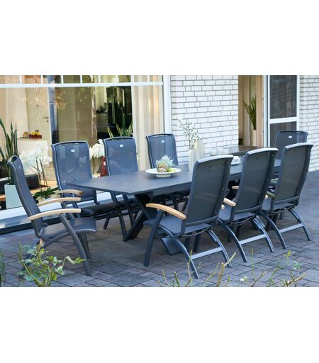 HARTMAN Sondermodell Xanadu / Da Vinci Garten-Essgruppe, xerix/anthrazit, Alu/Glaskeramik, 8 Klappstühle, 220/280x100cm