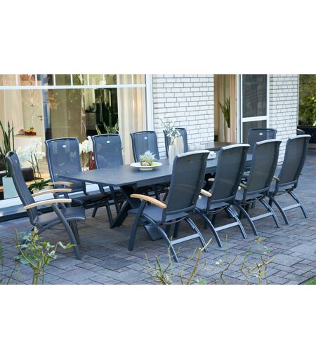 HARTMAN Sondermodell Xanadu / Da Vinci Garten-Essgruppe, xerix/anthrazit, Alu/Glaskeramik, 10 Klappstühle, 220/280x100cm