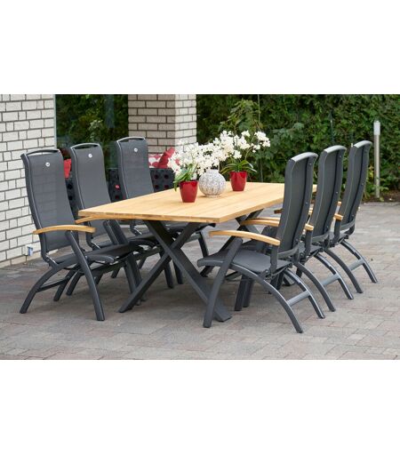 HARTMAN Xanadu / Da Vinci Garten-Essgruppe, xerix/anthrazit, Alu/Teakholz, 220 x 100 cm, 6 Klappstühle