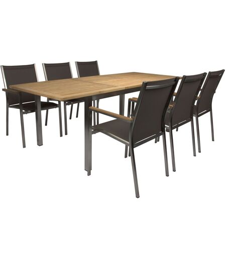 STERN Cardiff Garten-Essgruppe, taupe/grau, Edelstahl/Textil, 162/220 x 90 cm, 6 Pers., Teakholz