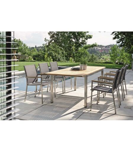 STERN Polaris Garten-Essgruppe, silbergrau, Edelstahl/Textil, 162/220 x 90 cm, 6 Pers., Teakholz