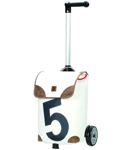 Der 360° Taschen Lee Trolley ist schnittig und nachhaltig aus recycelten Segeln hergestellt und wird mit dem Andersen Unus Shopper® Taschenroller geliefert. Die gerundeten Ecken der Klappe, als auch der Rand sind stilvoll mit Leder besetzt. Diese Leder-Applikation wiederholt sich unten an den vorderen Ecken der Tasche. Das Leder-Detail gibt dem Lee Trolley einen außergewöhnlichen und eleganten Schwung. In typischer 360° Taschen Qualität ist der attraktive Lee Trolley in der Innenseite nicht nur mit Innentaschen versehen, sondern auch stabil, robust vernäht und wasserabweisend. Darüber hinaus bietet der 360° Taschen Lee Trolley genügend Platz für große und schwere Dinge, was beim Einkauf im Supermarkt sehr behilflich sein kann. Um den Einkauf noch weiter zu erleichtern, lässt sich der Lee Trolley auch ganz einfach an den Einkaufswagen hängen. D... ...