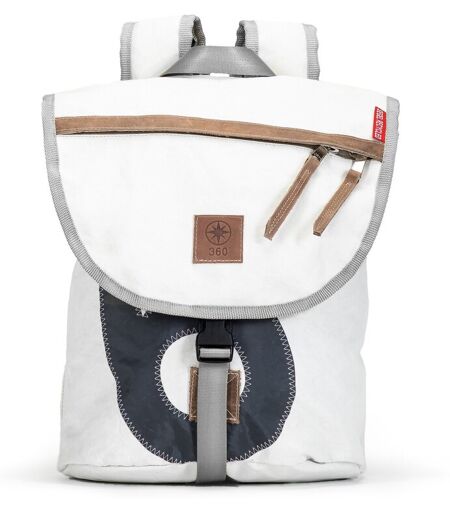 360° Taschen Landgang Mini Rucksack Segel weiß, Zahl grau, Gurt grau