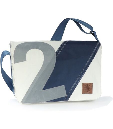 360° Taschen Barkasse Mini Laptoptasche weiß / blauer Streifen, Zahl hellgrau, Gurt blau
