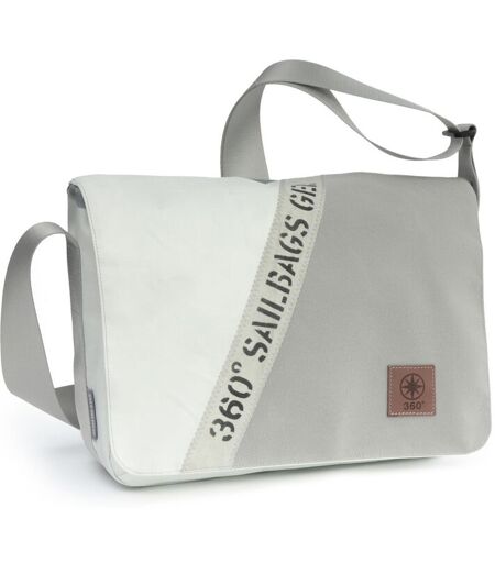 360° Taschen Barkasse Mini Laptoptasche weiß / Persenning grau, Stencil Aufschrift, Gurt grau