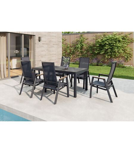 SIENA GARDEN Miros/Rondo Garten-Essgruppe, anthrazit, Alu/Ranotex-Gewebe, Ausziehtisch 180/240 x 90 cm, 6 Stapelsessel