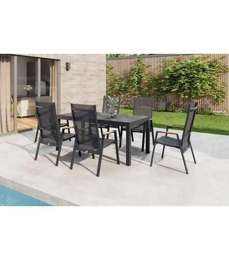 SIENA GARDEN Miros/Savona Move Garten-Essgruppe, Anthrazit, Alu/Textilene, Ausziehtisch 180/240x90 cm, 6 Stapelsessel