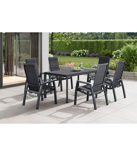 SIENA GARDEN Ricon/Milano Garten-Essgruppe, anthrazit, Alu/Ranotex-Gewebe, Tisch 160 x 90 cm, 6 Stapelsessel