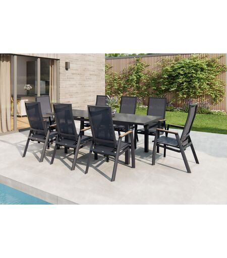 SIENA GARDEN Miros/Rondo Garten-Essgruppe, anthrazit, Alu/Ranotex-Gewebe, Ausziehtisch 180/240 x 90 cm, 8 Stapelsessel