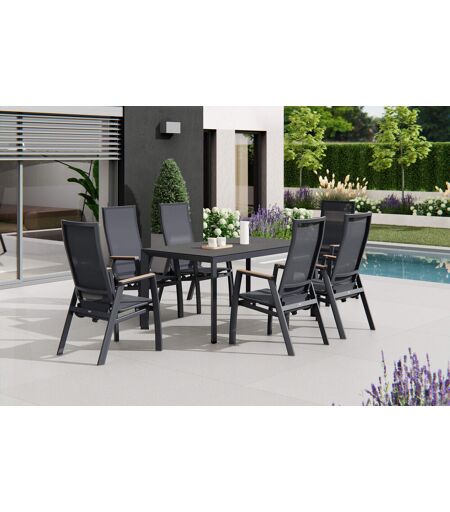 SIENA GARDEN Ricon/Rondo Garten-Essgruppe, anthrazit, Alu/Ranotex-Gewebe, Tisch 160 x 90 cm, 6 Stapelsessel