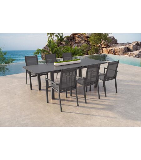 SIENA GARDEN Miros Garten-Essgruppe, anthrazit/dark concrete, Alu/Glas, Ausziehtisch 180/240cm, 6x Stapelsessel, Witterungsbeständig