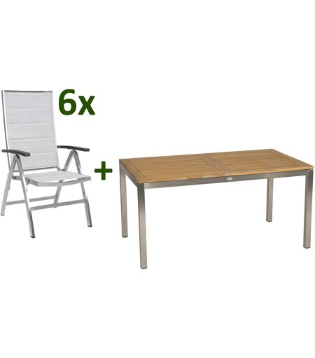 STERN Cardiff Garten-Essgruppe, silber, Edelstahl/Textilen/Teakholz/Alu, 162/220 x 90 cm, 6 Klappstühle, Butterfly-Auszug