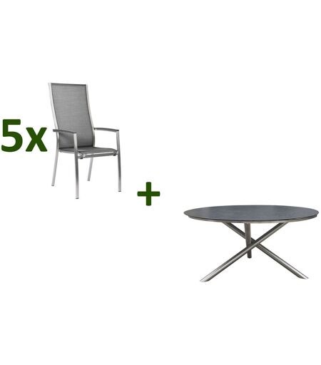 STERN Garten-Essgruppe, silber/grau, Edelstahl/Textil/Alu/Glaskeramik, Tisch Ø150cm, 5 Personen