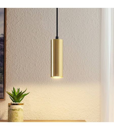 Die Pendelleuchte Raisan wurde aus Eisen gefertigt und besitzt eine gelungene Farbkombination aus Schwarz und Messing. Der zylinderförmige Leuchtenschirm gibt das Licht direkt nach unten ab und sorgt somit für eine zielgerichtete Ausleuchtung. ...