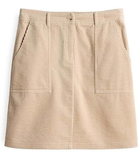 Damen Minirock aus Cord-Baumwolle Normale Bundhöhe Schließt mit Knopf- und Reißverschluss Seitliche Eingrifftaschen Aufgesetzte Gesäßtaschen Knieumspielende Länge Farbbezeichnung: Macadamia Material: 100% Baumwolle ...