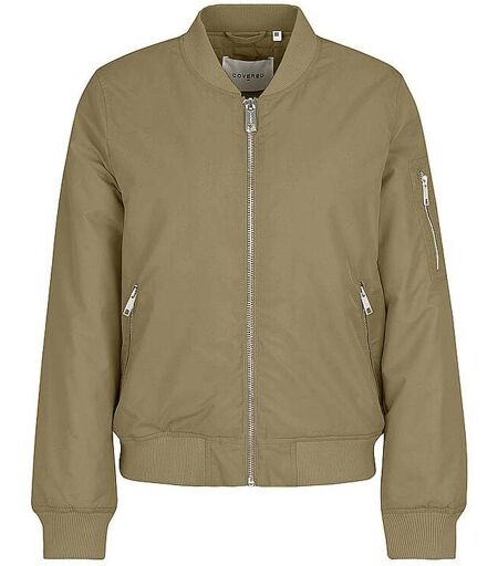 COVERED Damen Bomberjacke – der lässige Begleiter durch die kalte Jahreszeit. Hautschmeichelnder Rippstrick als Stehkragen und Ärmelbündchen. Durchgehender Reißverschluss. Windschutzblende innen hält auch bei windigem Wetter warm. Viel Stauraum durch zwei große Reißverschlusstaschen außen, eine Reißverschlusstasche auf dem Ärmel und eine Eingriffstasche innen mit Klettverschluss. Modische Applikation am Saum. Diese Jacke ist wattiert in Bottelsteppung mit recyceltem Material - Unifi REPREVE® - für ein gutes Gefühl, auch außerhalb der kalten Jahreszeit. Erhältlich in verschiedenen Größen ist unsere Damen Bomberjacke dank der wasserabweisenden Ausrüstung ein optimaler Allrounder - auch bei leichtem Regen. Farbbezeichnung: Olive Oberstoff: 100% Polyester Futter: 100% Polyamid Wattierung: 100% Polyester (Repreve) ...