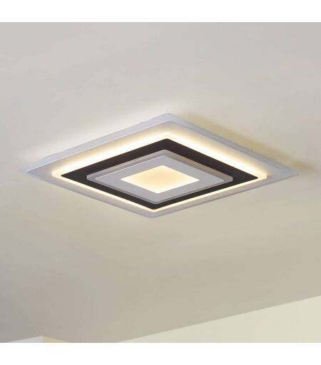 Die LED-Deckenleuchte Rebeka vereint modernes Design mit funktionaler Vielseitigkeit und ist aus hochwertigem Metall und Acryl gefertigt. Ihre Oberfläche setzt sich optisch durch unterschiedlich große Quadrate ab, die in Weiß und Schwarz gehalten sind. Die integrierte LED-Lichtquelle sorgt für gleichmäßiges Licht und lässt sich mithilfe der beiliegenden Fernbedienung mühelos steuern. Dank der CCT-Funktion kann die Lichtfarbe flexibel von warmweißem Licht (2.700 K) bis hin zu tageslichtähnlichem Licht (6.500 K) angepasst werden. Zusätzlich kann die Lichthelligkeit stufenlos reguliert werden. So kann jederzeit die optimale Lichtstimmung eingestellt werden um den Raum in Szene zu setzen. ...