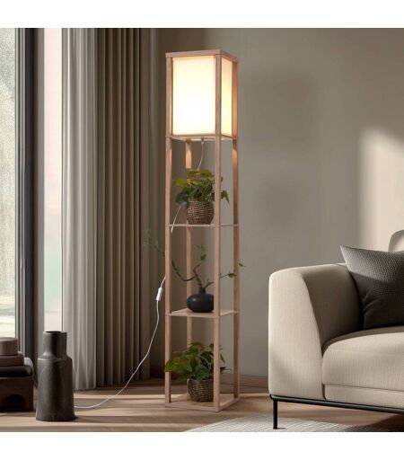 Mit ihrer Form erinnert die Stehleuchte Birta an ein Regal und überzeugt durch ihre praktischen Ablage-Elemente. Abgerundet wird die Stehlampe durch einen weißen Textilschirm im oberen Bereich, der durch seine Beschaffenheit für ein diffuses Licht sorgt, das rundherum in den Raum abgestrahlt wird. Birtas Gestell besteht aus Kiefernholz und fügt sich dank ihrer geradlinigen und modernen Gestaltung in zahlreiche Wohnumgebungen ein. Am Kabel befindet sich ein Schalter, über den sie mühelos bedient werden kann. - kann mit bis zu 2 kg belastet werden ...