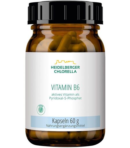 Nahrungsergänzungsmittel sind kein Ersatz für eine ausgewogene und abwechslungsreiche Ernährung und eine gesunde Lebensweise. Heidelberger Chlorella® Vitamin B6 aktivAktives Vitamin B6. 120 Kapseln.Das Besondere an Vitamin B6 aktiv ist, dass das wertvolle B-Vitamin hier in seiner aktiven Form, der Coenzym-Form Pyridoxal-5-Phosphat (P-5-P) vorliegt.Zutaten: Füllstoff: Cellulose; Hydroxypropylmethylcellulose (Kapselhülle); Pyridoxal-5-Phosphat.Nährwerte: Durchschnittliche Nährwerte: pro Kapsel NRV Vitamin B6 als Pyridoxal-5-Phosphat 10.28 mg 15 mg 734 Verzehrempfehlung: 1 Kapsel morgens während der Mahlzeit oder nach Empfehlung eines Therapeuten. Hinweise: Die angegebene empfohlene tägliche Verzehrmenge darf nicht überschritten werden. Lagerhinweis: Kühl und trocken aufbewahren. Außerhalb der Reichweite von kleinen Kindern lagern. Nettofüllmenge: 120 Kapseln = 60 g Hersteller: Heidelberger Chlorella GmbH In der Heidelslach 469181 Leimen/St. Ilgen ...