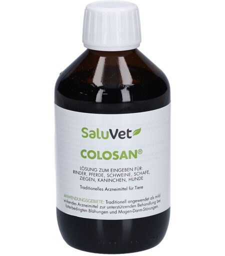 Arzneimittel zur Behandlung bei futterbedingten Blähungen und Magen-Darm-Störungen bei Tieren Vor allem bei Kälbern, die nach der Milchtränke gebläht“ sind, führt ColoSan® schnell zum Erfolg. Dabei ist es sehr gut verträglich und die Tiere sind schnell wieder fit.Bei Muttersauen wirkt ColoSan® gegen Verstopfung und kann MMA vorbeugen. In einer Studie erhielten die Tiere der Versuchsgruppe 2 – 3 Tage vor dem errechneten Geburtstermin ColoSan® verabreicht.Die spezielle Zusammenstellung und aufwendige Verarbeitung verschiedener ätherischer Öle führt zu einem einmaligen natürlichen Tierarzneimittel. Die wirksame Rezeptur ist unverändert seit über 50 Jahren am Markt und bei Landwirten gut bekannt und sehr geschätzt. Die enthaltene Kombination aus Kümmel-, Fenchel- und Anisöl hat eine beruhigende und entkrampfende Wirkung auf den Magen-Darm-Bereich.Ein großer Vorteil von ColoSan® ist, dass dieses Tierarzneimittel keine Wartezeit auf Milch und Fleisch hat.DosierungsanleitungEinzeldosis: Gewichtsklasse Dosis in ml / 10 kg Dosis in mg / kg Beispiele < 10 kg 3 ml / 10 kg 300 mg / kg Lamm, 5 kg: 1,5 ml 10 - 100 kg 1 ml / 10 kg 100 mg / kg Kalb, Schaf, Ziege, 50 kg: 5,0 ml 100 - 600 kg 0,3 ml / 10 kg 30 mg / kg Kuh, 600 kg: 18 ml Geben Sie ColoSan® unverdünnt seitlich in die Backentasche. Nötigenfalls kann die Anwendung nach einer halben bis 2 Stunden wiederholt werden. Etwa eine halbe Stunde nach der Eingabe sollte Tränkewasser zur Verfügung gestellt werden. Im Fall einer kleinschaumigen Gärung bei Rind, Schaf und Ziege kann ColoSan® zusammen mit ca. 0,25–1 l Speiseöl eingegeben werden. Wirkstoffe:Sternanisöl, Bitterfenchelöl, Kümmelöl, Chinesisches Zimtöl, Schwefel ...