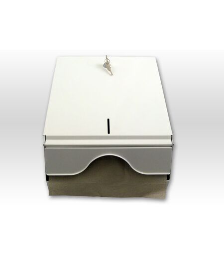 Spender für Papierhandtuch Metall ( Falthandtuchspender ) Dieser Falthandtuchspender ist passend für alle Papierhandtücher in Zick Zack Faltung bis 26 cm. weiß lackiert Metallausführung mit Schloss und Schlüssel incl. Befestigung (Dübel und Schrauben) Aufnahme: ca. 700 Blatt Bekannt ...